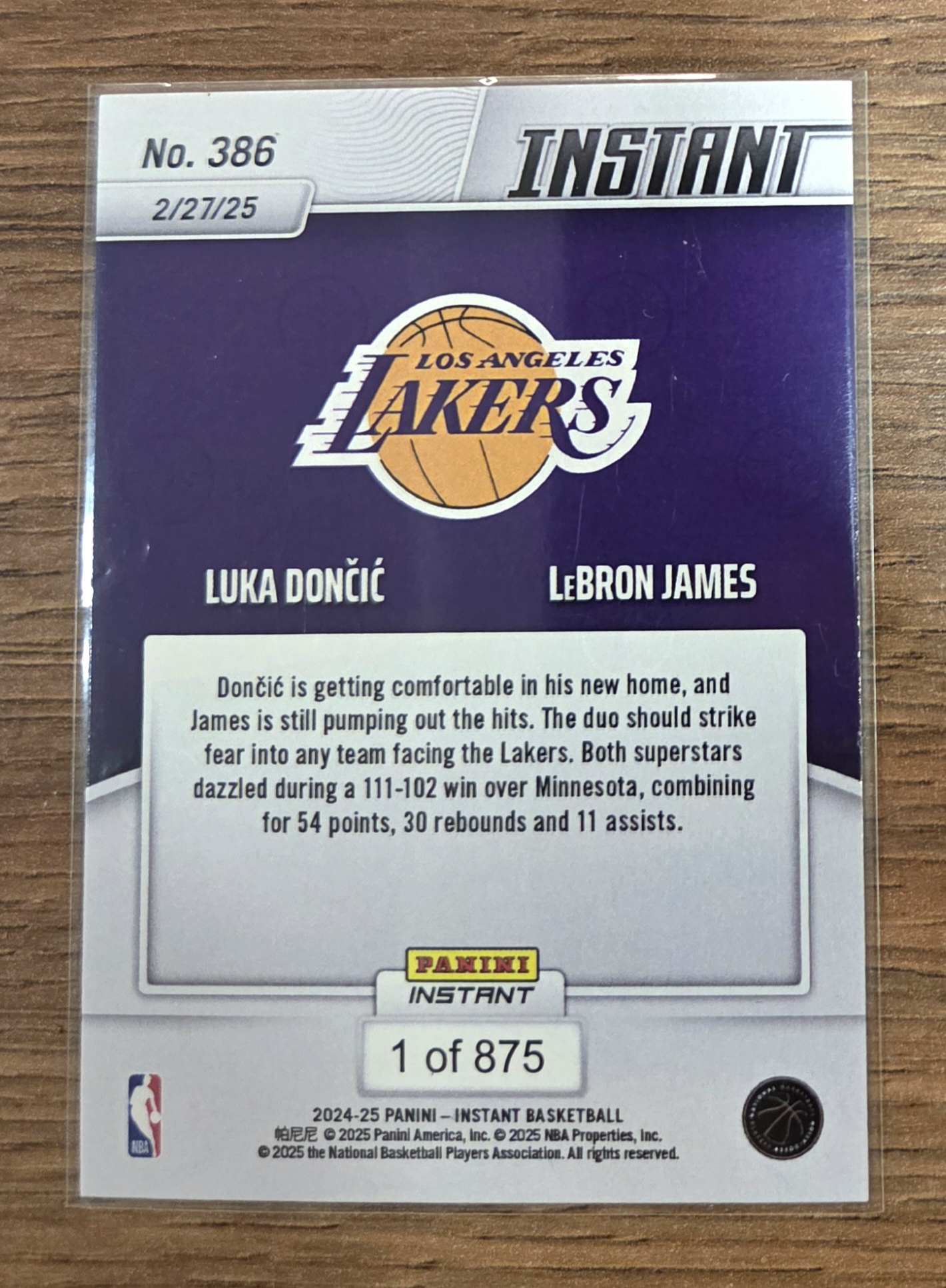Panini Instant izdaje iz leta 2024-25 so zelo iskane zaradi Luka Dončića, ki igra z LeBronom pri Lakers, kar povečuje zanimanje zbirateljev