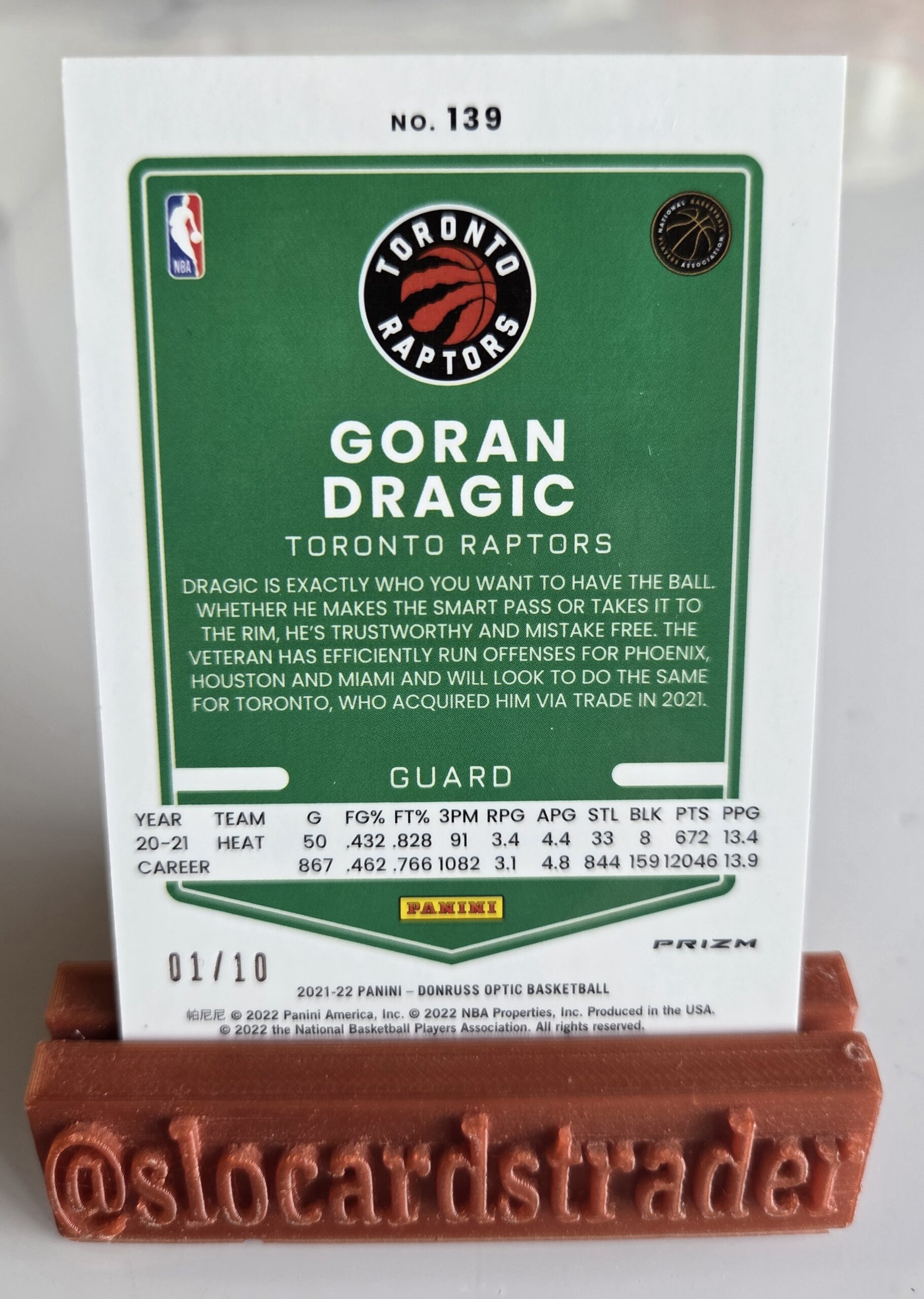 This listing features an original NBA trading card of Goran Dragić, Toronto Raptors, from the Panini Donruss Optic Basketball 2021/22 set.