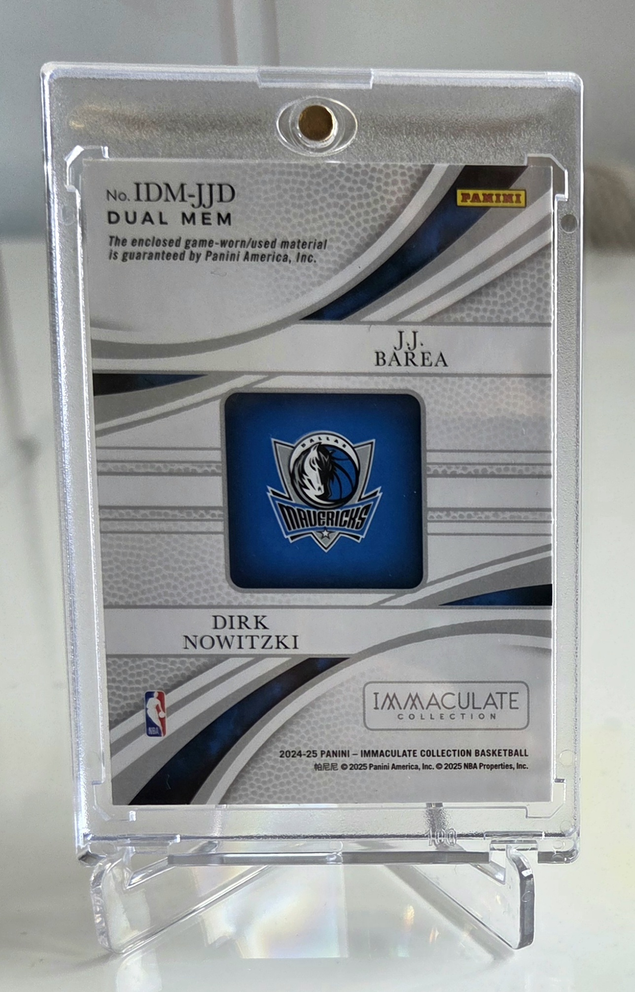 Naprodaj 2024-25 Panini Immaculate Collection “Dual Mem” kartica z JJ Barea in Dirk Nowitzki (Dallas Mavericks).
