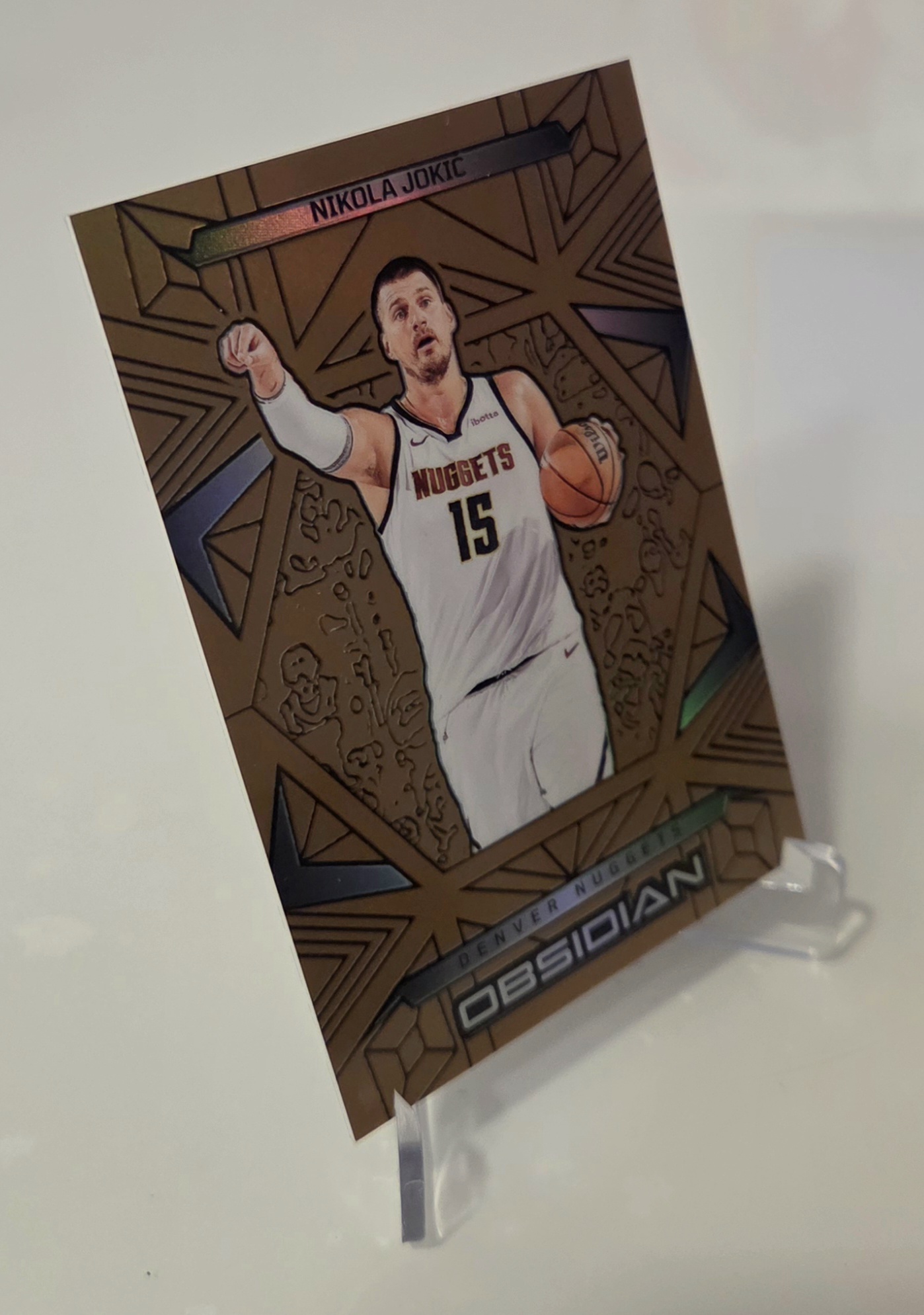 An original NBA collectible card of Nikola Jokić – Center, Denver Nuggets, from the Panini Obsidian Basketball 2024/25 set.