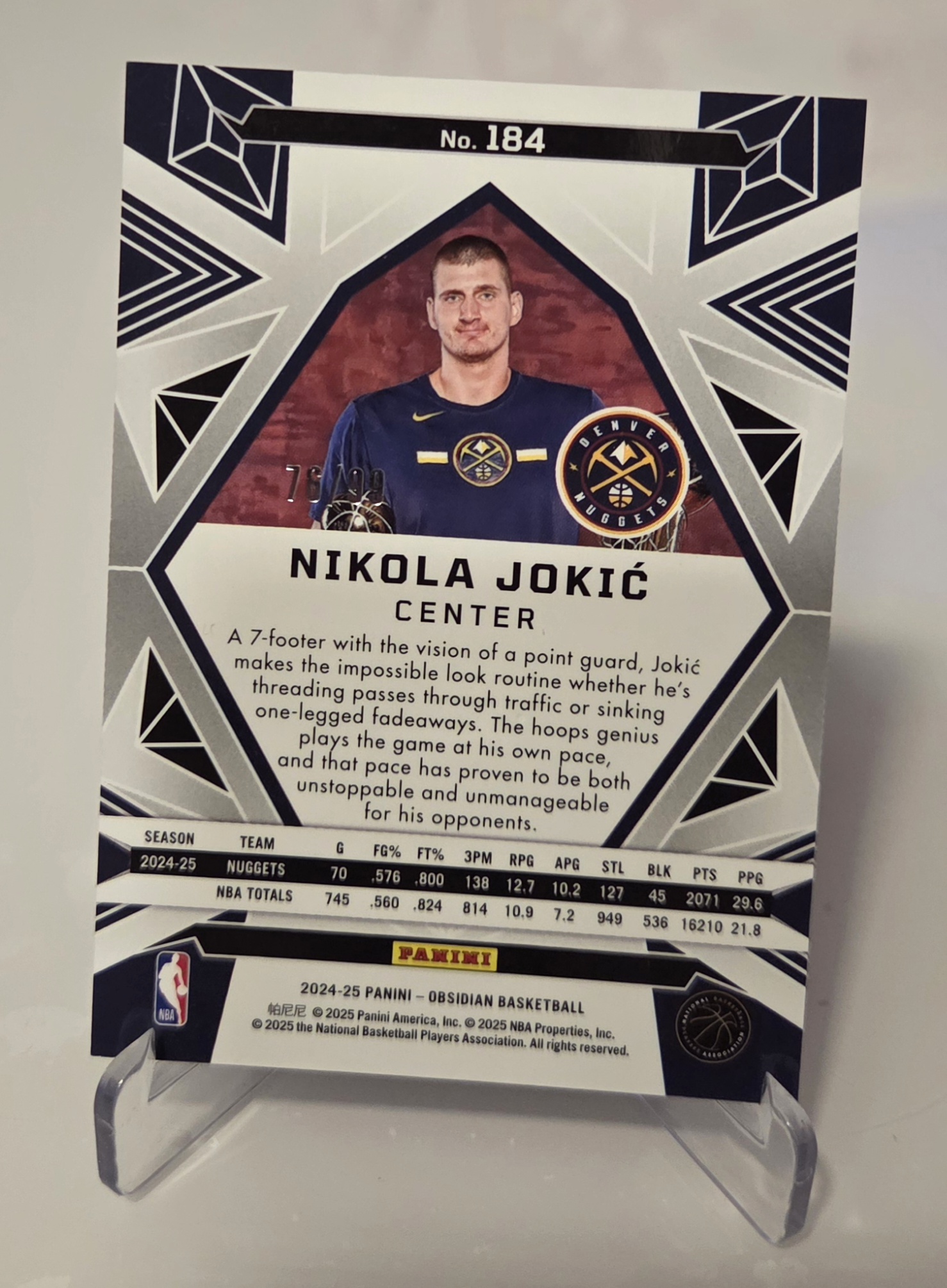 Nikola Jokić – Panini Obsidian 2024/25 /99 Denver Nuggets
