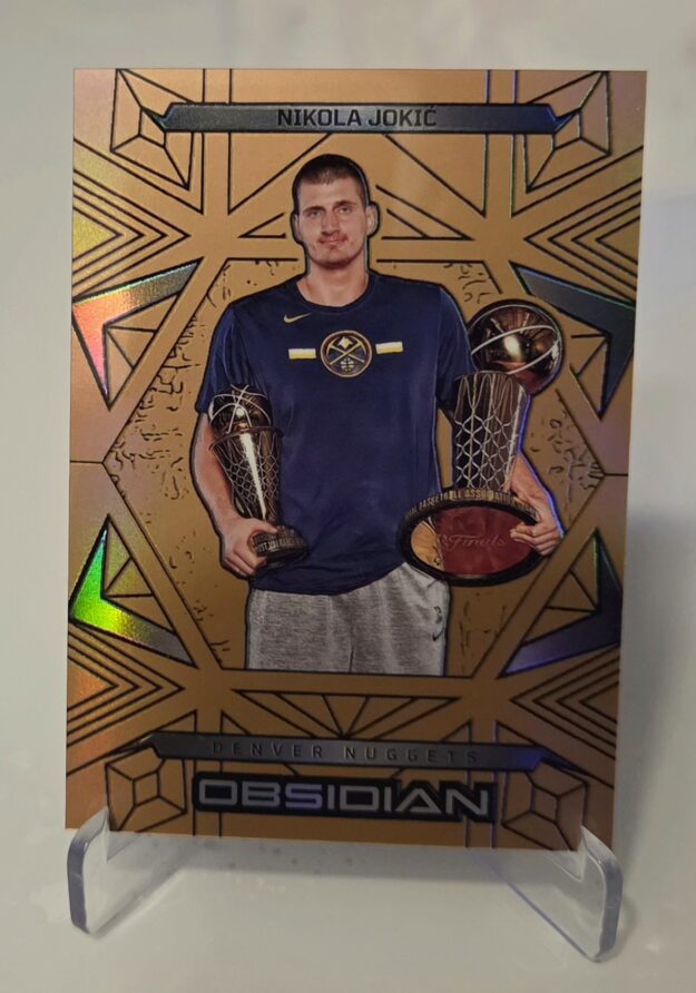 The card stands out with its signature Obsidian design, metallic finish, and refined details that place it among the more desirable modern collectibles. Jokić, a multiple-time MVP and one of the greatest centers of all time, is highly sought after by collectors worldwide.